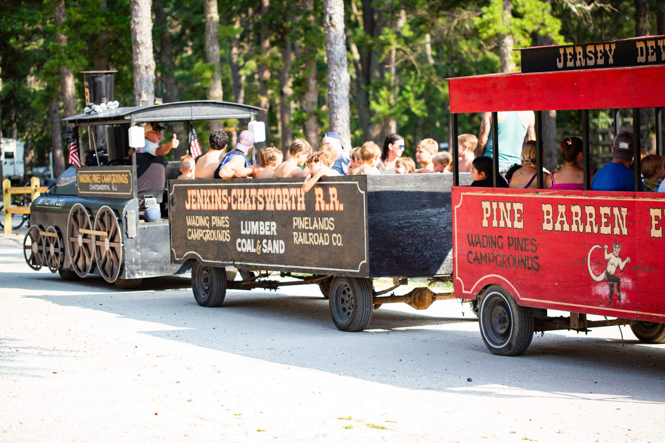 At Wading Pines Camping Resort, your family will have plenty of options when it comes to activities and recreation. The only thing that is not an option is boredom. You can picnic at our private island in the river, take a dip in our spacious swimming pool, fish in our privately stocked pond, or enjoy every sporting activity from basketball to sand volleyball to horseshoes! Be sure to board our “Jersey Devil” train ride for a scenic spin through the campground.