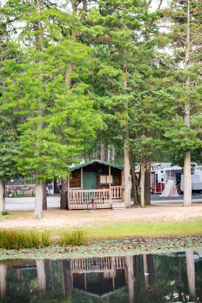 Escape to the New Jersey pinelands and enjoy a relaxing stay in one of our 16 rustic cabin rentals at Wading Pines Resort. Surrounded by tranquil, wooded scenery, our cabins offer a peaceful retreat where you can truly disconnect and unwind. Enjoy views of the fishing pond from your cabin’s covered porch.